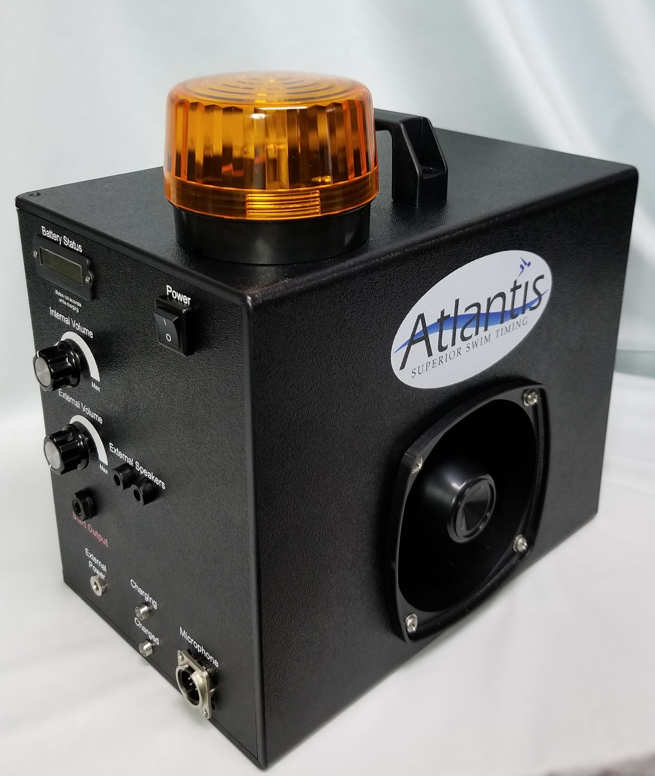 The Atlantis Starter is the newest product of Superior Swim Timing. This full featured starter system brings a sense of trust and ease when adding this to your swim meet equipment. Just plug your cables in and you’ll be ready to run for 3-4 days before needing to charge the battery.