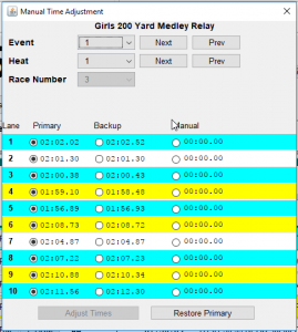 - “USE” Backup Time Button—SST now includes a button on each lane to use the backup time for display or as the official time depending on the time adjustments configuration.